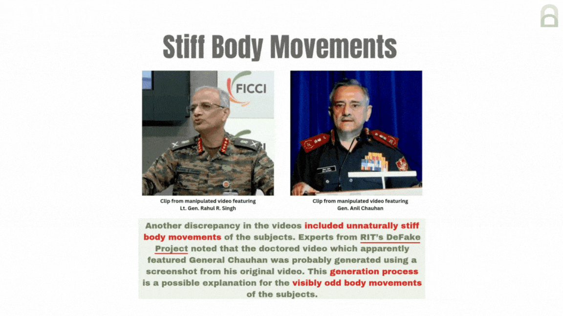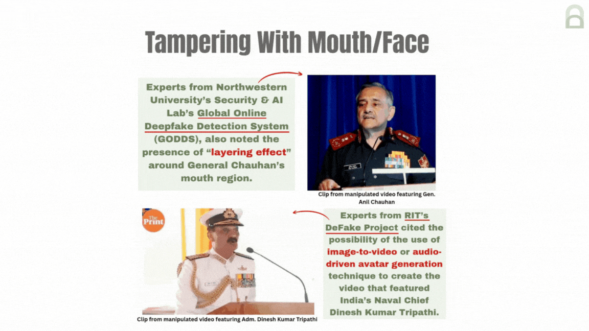 The individuals targeted through those videos have been senior Indian defence officials such as chief of the army, air force, and navy as well as top Indian ministers. Their visuals were used with fully or partially A.I.-generated audio tracks to spin narratives about India’s supposed loss of combat equipment and personnel to Pakistan, or India conceding to Pakistan during what was popularly known as “Operation Sindoor”.