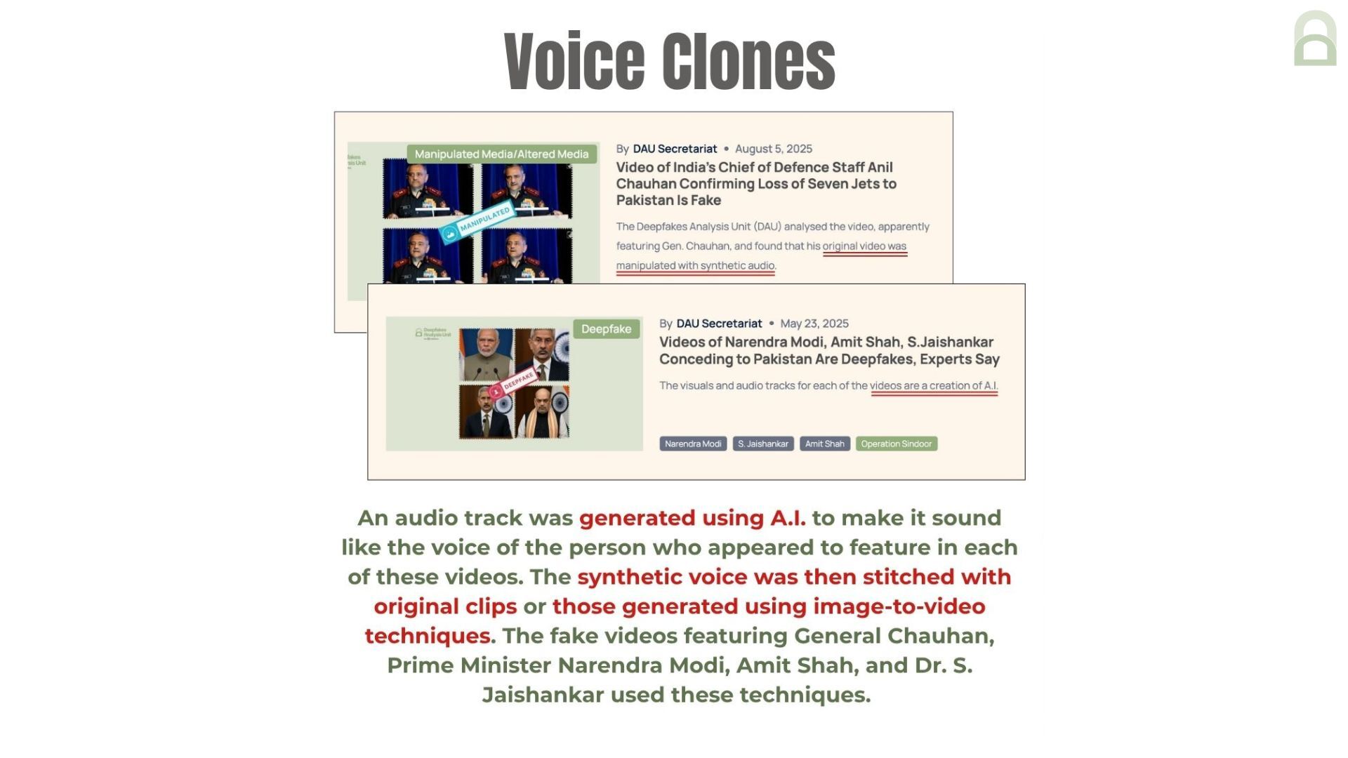 Statements that were never made by representatives of the Indian government were being misattributed to them. What’s new? Blurring of lines between synthetic and authentic content; the threat of such falsehoods, misinformation, and targeted disinformation accentuating the tensions in real time at an unprecedented speed.