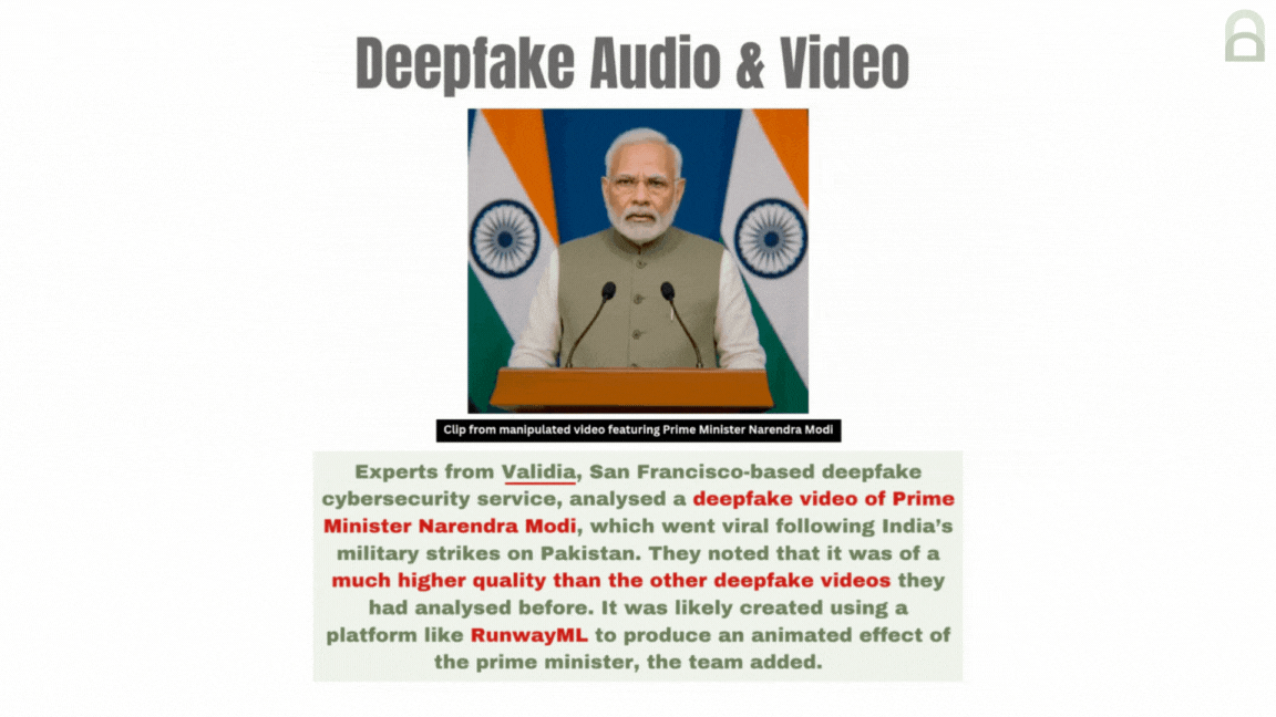 In the course of our analysis, we came across only a handful of deepfakes which we debunked, one of those was a video apparently featuring Prime Minister Narendra Modi. You can read more about that and all the other reports on “Operation Sindoor” here.
