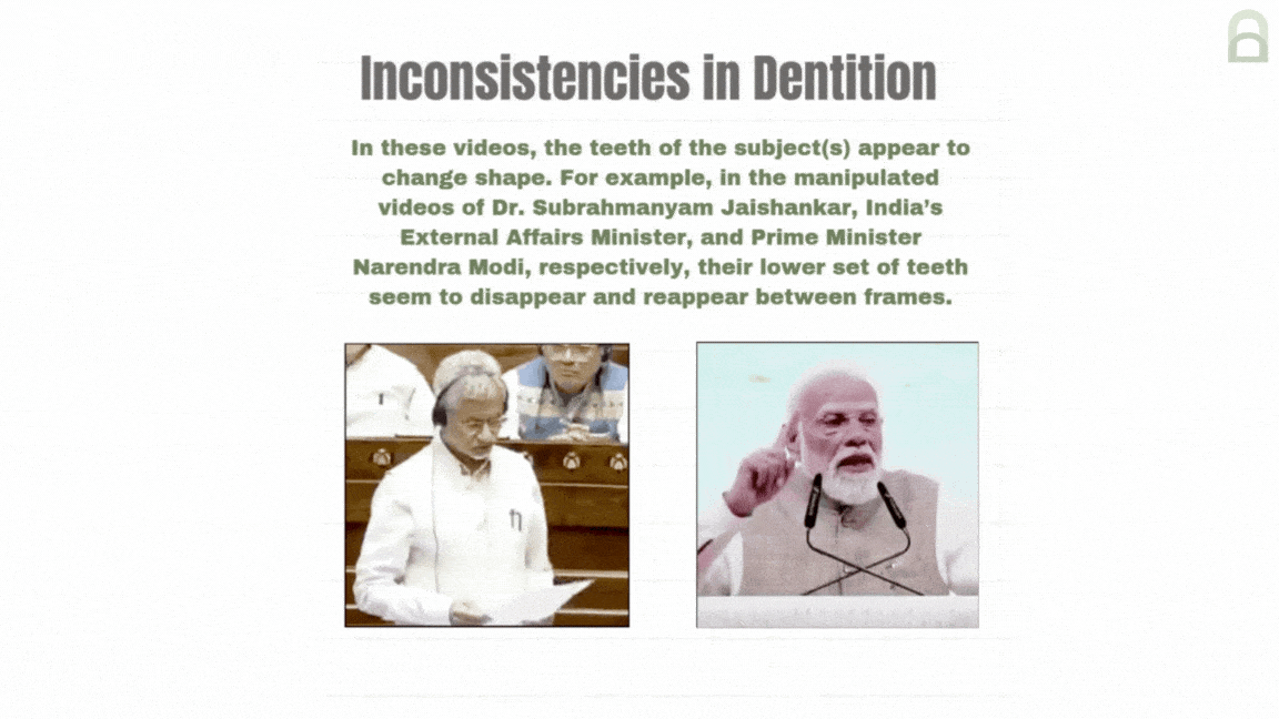 On Dr. Jaishankar’s manipulated video, Ms. Wu observed that “the video was fairly blurry, with the main character’s mouth movement and facial features hard to see clearly, so it may not be very reliable to claim whether the weirdness in the mouth or face region is due to manipulation or high compression.”