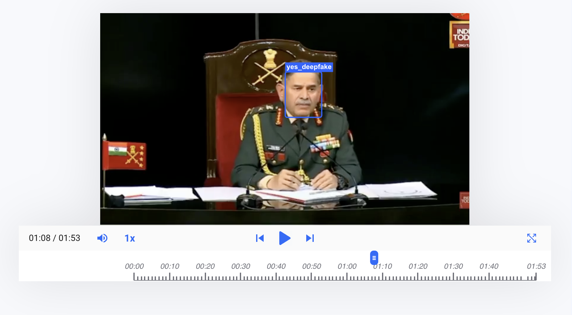 The team ran the video through audio and video detection models. The results that returned indicated that the audio track was likely A.I.-generated. However, their detectors gave inconsistent results for the video track, they attributed that to the colour contrast burst and grainy pixels around the general’s face region.