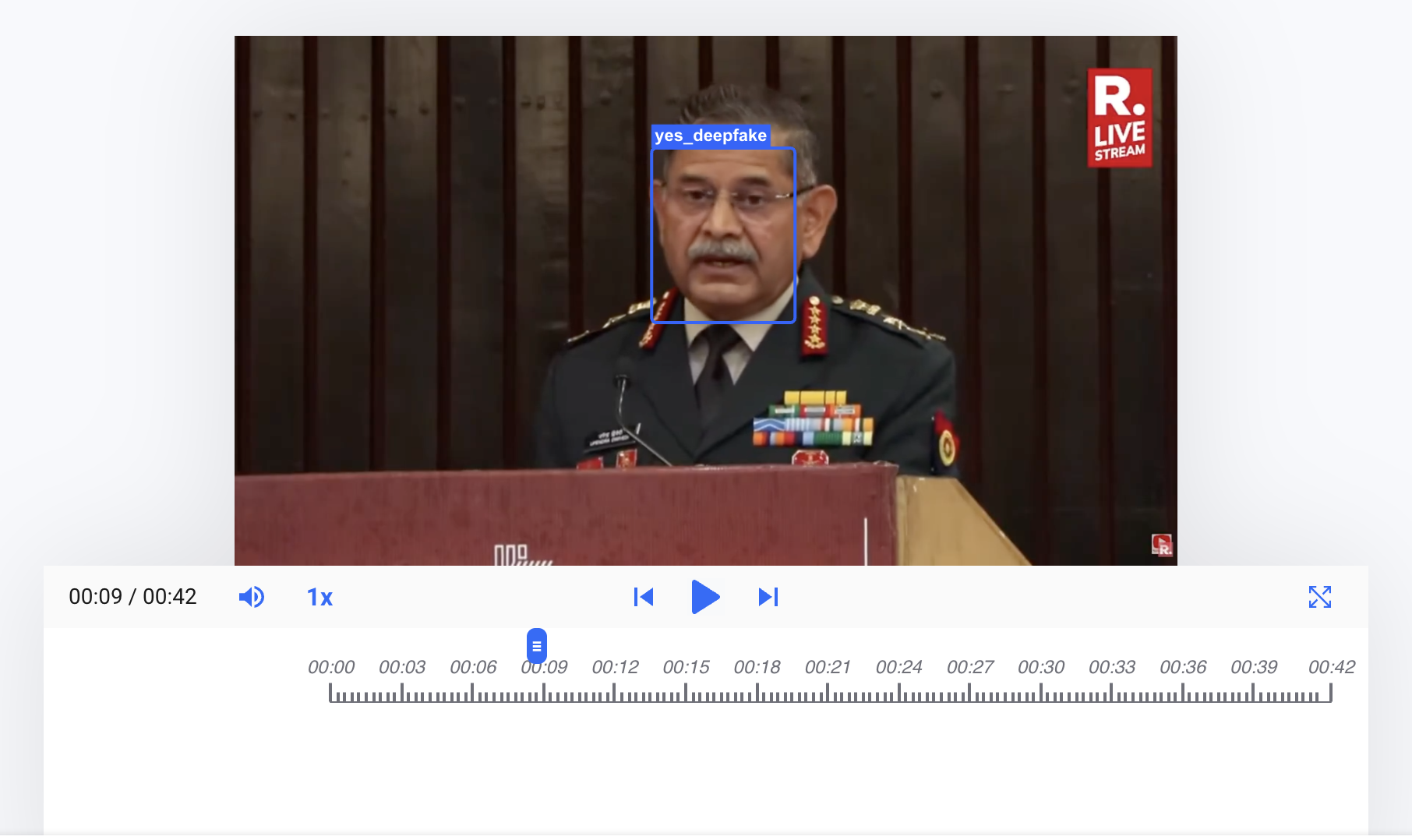 To get further expert analysis on the video, we escalated it to the Global Online Deepfake Detection System (GODDS), a detection system set up by Northwestern University’s Security & AI Lab (NSAIL). The video was analysed by two human analysts and run through 22 deepfake detection algorithms for video analysis; and 70 deepfake detection algorithms for audio analysis.