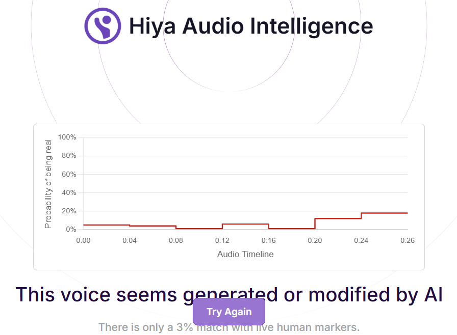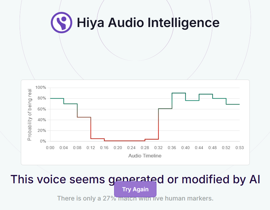 The voice tool of Hiya, a company that specialises in artificial intelligence solutions for voice safety, indicated that there is a 97 percent probability that the audio tracks in both the manipulated videos were modified or generated using A.I.