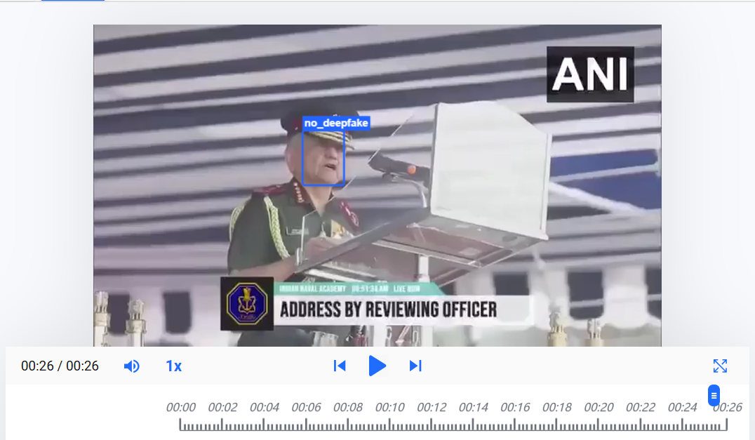 To get another expert to weigh in on the video featuring Gen. Dwivedi, we escalated it to the Global Online Deepfake Detection System (GODDS), a detection system set up by Northwestern University’s Security & AI Lab (NSAIL). The video was analysed by two human analysts, run through 21 deepfake detection algorithms for video analysis, and 70 deepfake detection algorithms for audio analysis.